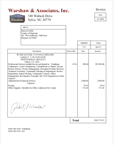 The publicly available invoices illustrate the problem. They reflect a bureaucratic structure that exercises expansive authority while exhibiting little regard for the fiscal transparency taxpayers deserve. The March 2024 invoice, for example, reports 676.6 aggregated hours devoted to a broad, but not exhaustive, category of “Professional Services” at a rate of $300 per hour, amounting to $202,990 for the month. Yet, the public has no way to determine how that time was divided or what “services” were provided. An additional fee of $2,000 was added for unspecified “Administrative/Financial Services Expenses.” The only itemized charges were $58.64 for postage, and $531.68 for office supplies—a shredder.[22] Taxpayers can see the price tag. They cannot see the work behind it.